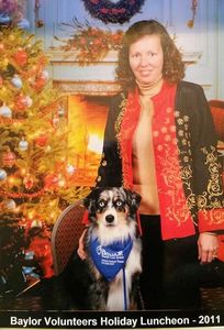 "Maverick" is very affectionate - loves to be scratched behind the ears or have his belly rubbed! He is just as eager to give you kisses! He also loves to romp and play with our son - Maverick is very fast!!!! He and our son chase each other, play tug of war and rough house often, but all we have to do is say "sweet" and instantly Maverick is gentle, loving and ready to snuggle. As much as he loves to play, he is equally content to doze quietly at your feet or cuddle with you as you watch TV. He blows us away! Who would ever know at this time this picture was taken, that Maverick would grow into an award winning Companion and Therapy Dog at Baylor Medical Center? We are so thankful for our breeder Judy Reynolds, for her professionalism.