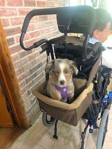Whoever said that Mini Aussies are hyper active, better take a look at Tater and Spirit! Mini Aussies (Americans) tend to mirror the energy level of their human family members, and whereever their humans are is where they want to be.."Our two Mini Aussies at 4 1/2 years old are doing great. It is amazing how well they get along together. When we go on vacation, of course they always go with us. Spirit and Tater are great travelers and well known in many stores where we shop.... " The Druff Family