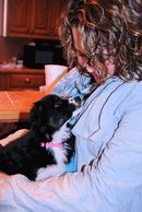 "Buying puppies from the Internet is a scary task. Just in searching for breeders you often come across horror stories of buying unhealthy puppies. Being just 8 months from receiving my DVM, I was anxious to ask tons of questions of the breeders I contacted before I looked at any puppy pictures... Because we all know that a cute puppy skews all reasoning. I had almost given up, then I found the Rocking 2R's web page. I called Judy and she answered all my questions honestly without dancing around the truth. I was impressed with her dedication to her pets, her complete medical records, the testing she has done on all of her adults for the common Aussie health problems (hip and eye evaluation, and MDR1 etc.). I was sold on getting a Mini Aussie from Judy before she even had any pups available. At the time it was likely that I would have to wait 6 months to get the color I wanted and I was fine with it because no one else could compare. At last, we bought Rowdy home, and he has been such a joy! He has only been with us a couple weeks and is potty trained, he can sit, lay down, rollover, shake and paw. Judy made the experience of buying a dog long distance a great experience and I will likely be a repeat customer! Lauren Otto, MO
