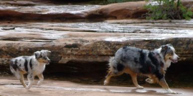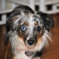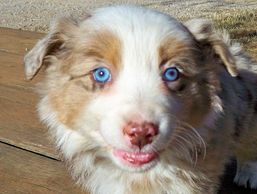 ”We met Judy when we were looking for a special buddy for our deaf Mini Aussie, Skye. After losing our old furry friend, Savvy, Skye was severely depressed. We knew we had to find her a new buddy. Judy interviewed me, then invited me to her ranch to meet the male red merle that would become known as “Chili”. From the first day, it was as if Chili knew it was his "job" to look after her. He is very protective of Skye and our family, highly intelligent, listens well, is easy to train, housebroken and loves to swim and play ball. If you are considering a mini Aussie I would highly getting your dog from Judy. How she handles her puppies from birth until you get them, is testament to how dedicated she is to producing a wonderful dog. Her dogs are well socialized and are extremely easy to handle & train. I cannot say enough good things about Judy & her "babies". I wish you much joy with your new puppy and hope that you will have as much pleasure & love from your puppy as Chili has given us." Laura J.