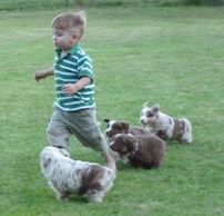 At 3 years old, Ethan said he needed a brother. So along came his hairy bro, "Berkeley". They are inseparable. Miniature Australian/American Shepherds are excellent family dogs