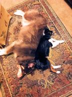 Bleu Belle has an incredible coat and She is a Brilliant Girl! Bleu’s herding instinct is very strong - so much so she has become mommy’s little helper. If I yell at any of the cats for doing something they are not supposed to… Bleu springs into action and reprimands them, and usually she either yells at them too, gives them a bump with her nose, a paw on their back or just runs them back over the gate. Sometimes it's annoying when she does it but let’s face it in 4 days I’ll be 48… I don’t move like I used to…